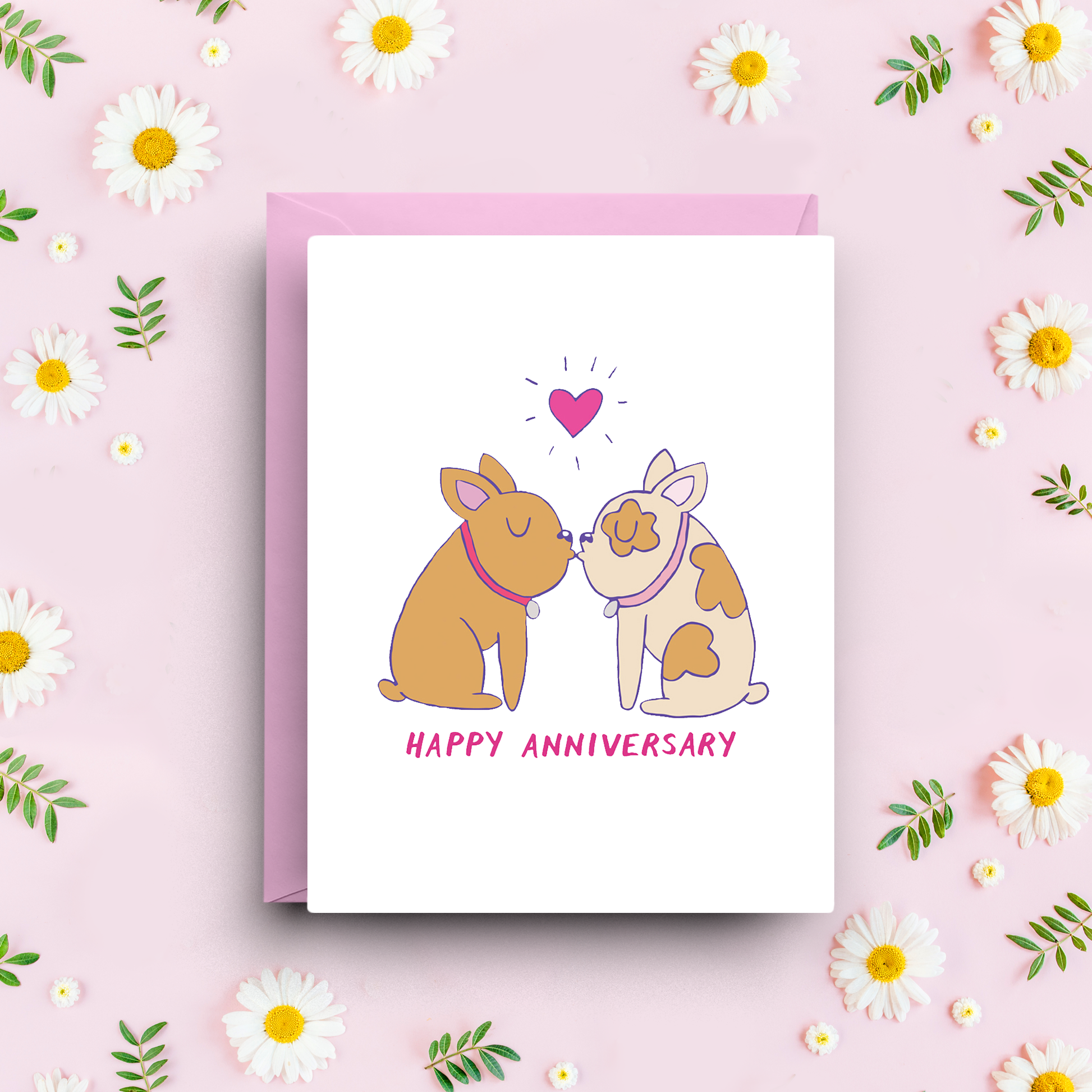 - Perfect for couples who share a love for dogs, this card features an adorable French Bulldog illustration that adds a playful and heartfelt touch to your anniversary wishes.