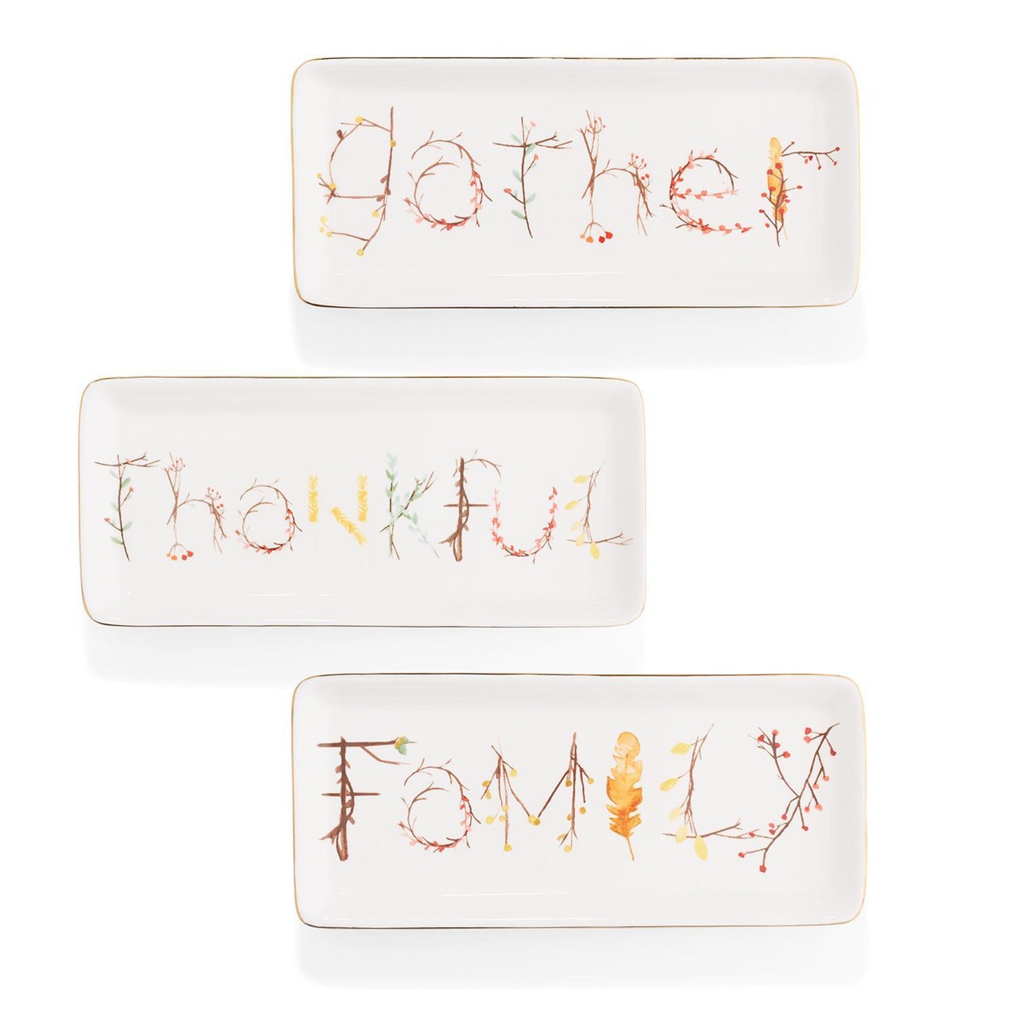 • Serve food with a side of thanks with the Gather Serving Plate. Crafted in three different styles—Gather, Fall, and Thanksgiving—each plate is a celebration of warm, sincere gratitude.