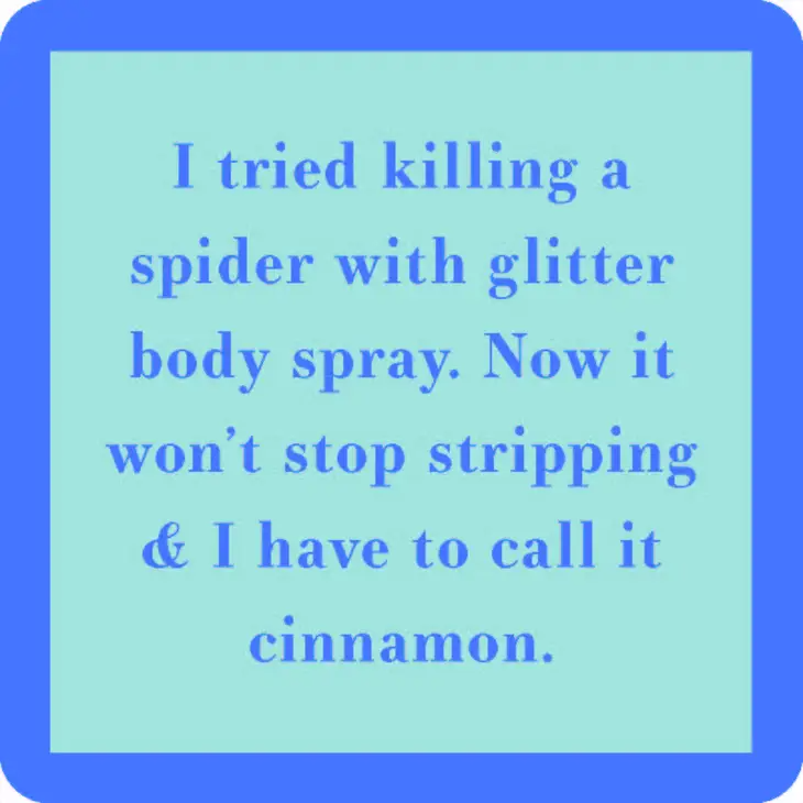 - “I tried killing a spider with glitter body spray. Now it won’t stop stripping & I have to call it Cinnamon.”