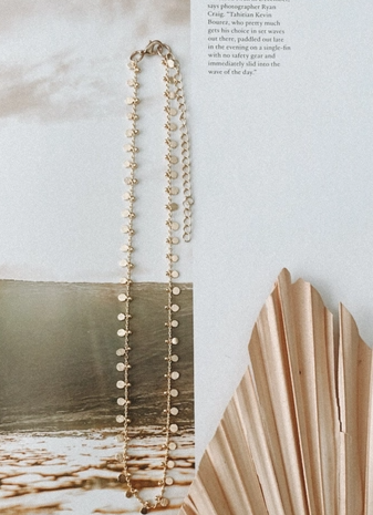 - 14” chain, adjustable up to 17”, studded with 3mm round pressed charms