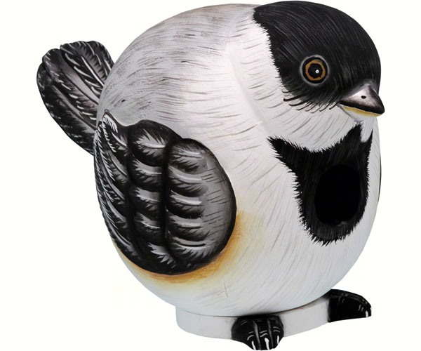 • Hand-carved from albesia wood, a renewable resource, each bird house is hand painted with non-toxic paints and coated with polyurethane to protect them from the elements.