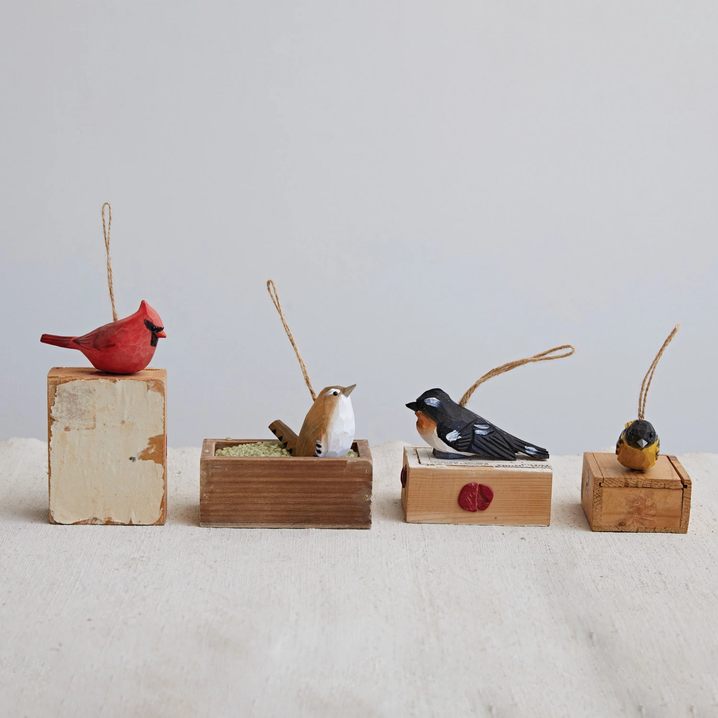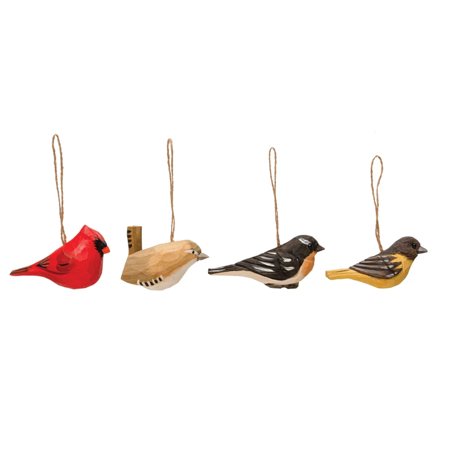 Hand Painted Wood Carved Bird Ornament - 2-in
