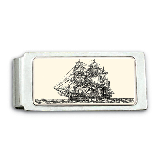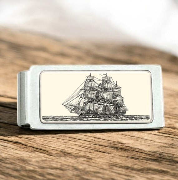 U.S.S. Constitution - Porcelain and Stainless Steel Hinged Money Clip