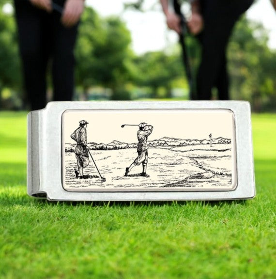 Golfers - Porcelain and Stainless Steel Hinged Money Clip