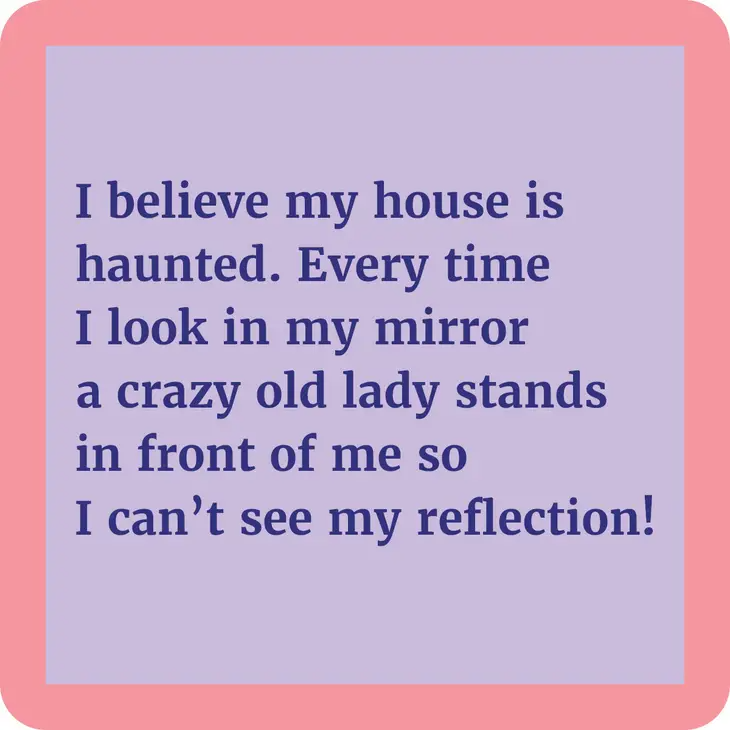 - "I believe my house is haunted. Every time I look in my mirror a crazy old lady stands in front of me so I can't see my reflection."
