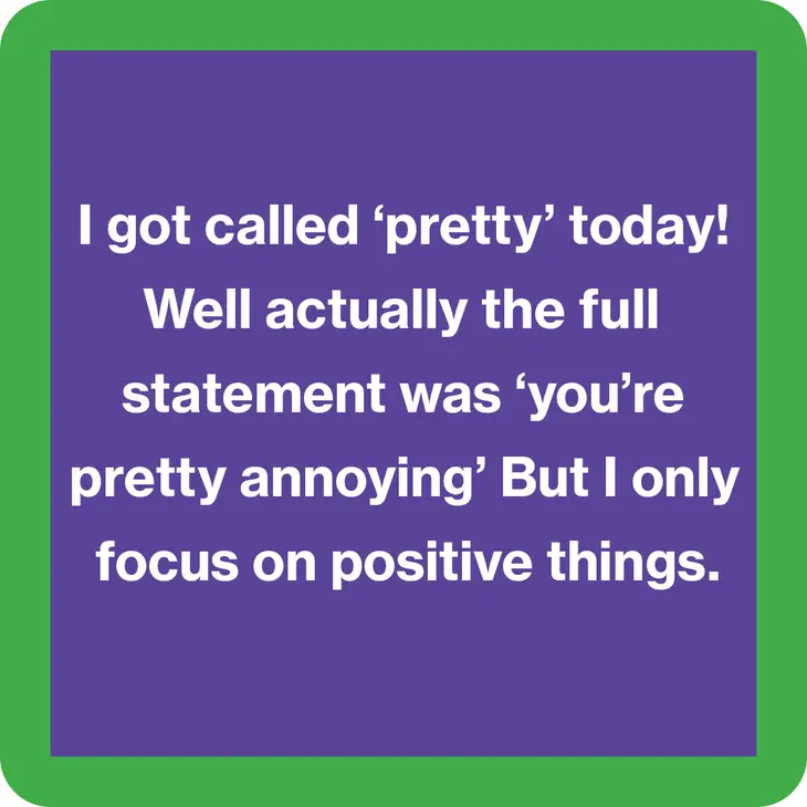- "I got called 'pretty' today! Well actually the full statement was 'you're pretty annoying' But I only focus on positive things"