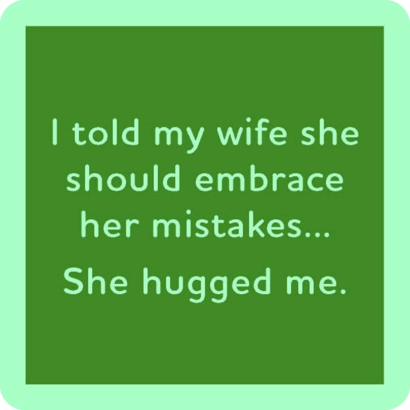 - reads: "I told my wife she should embrace her mistakes....She hugged me."