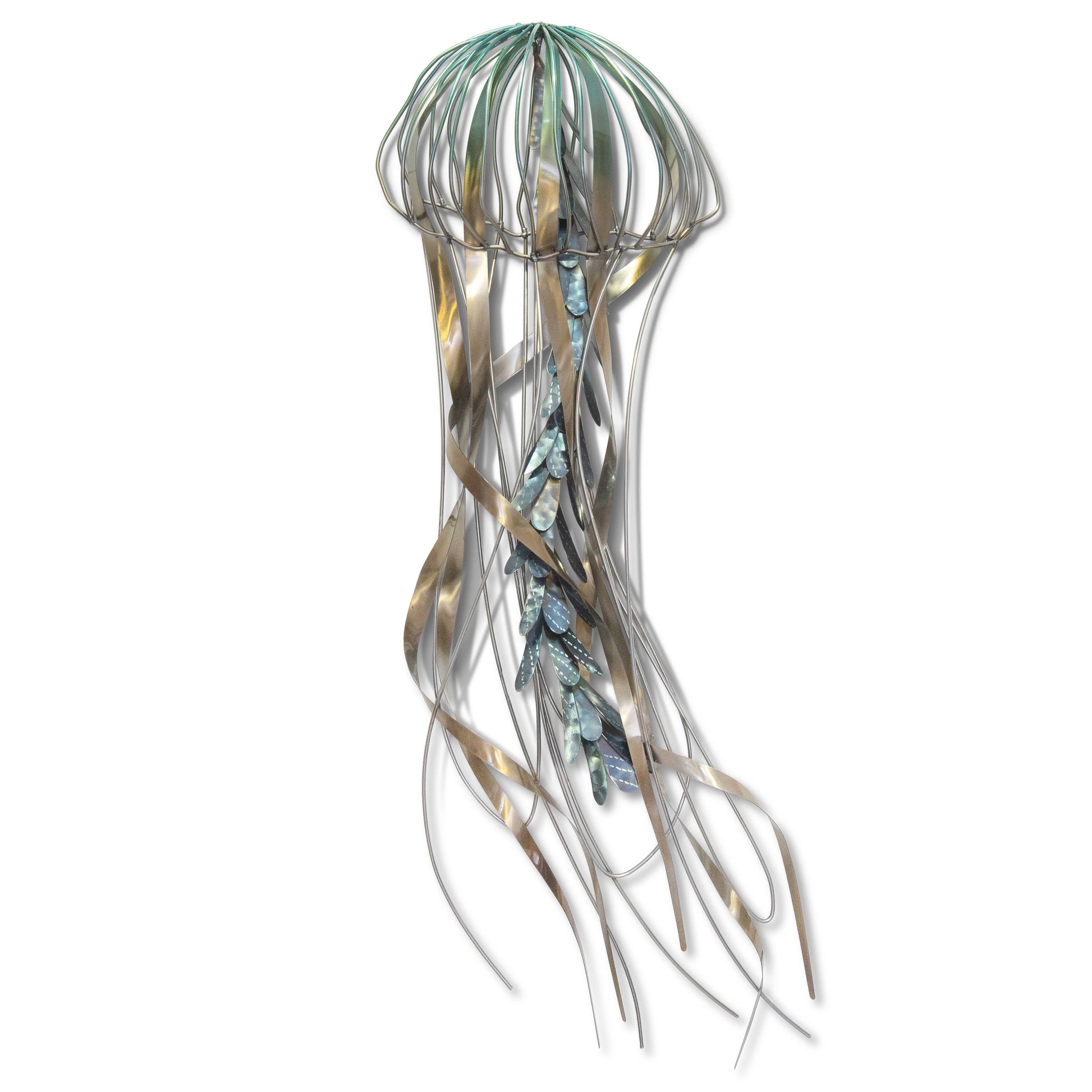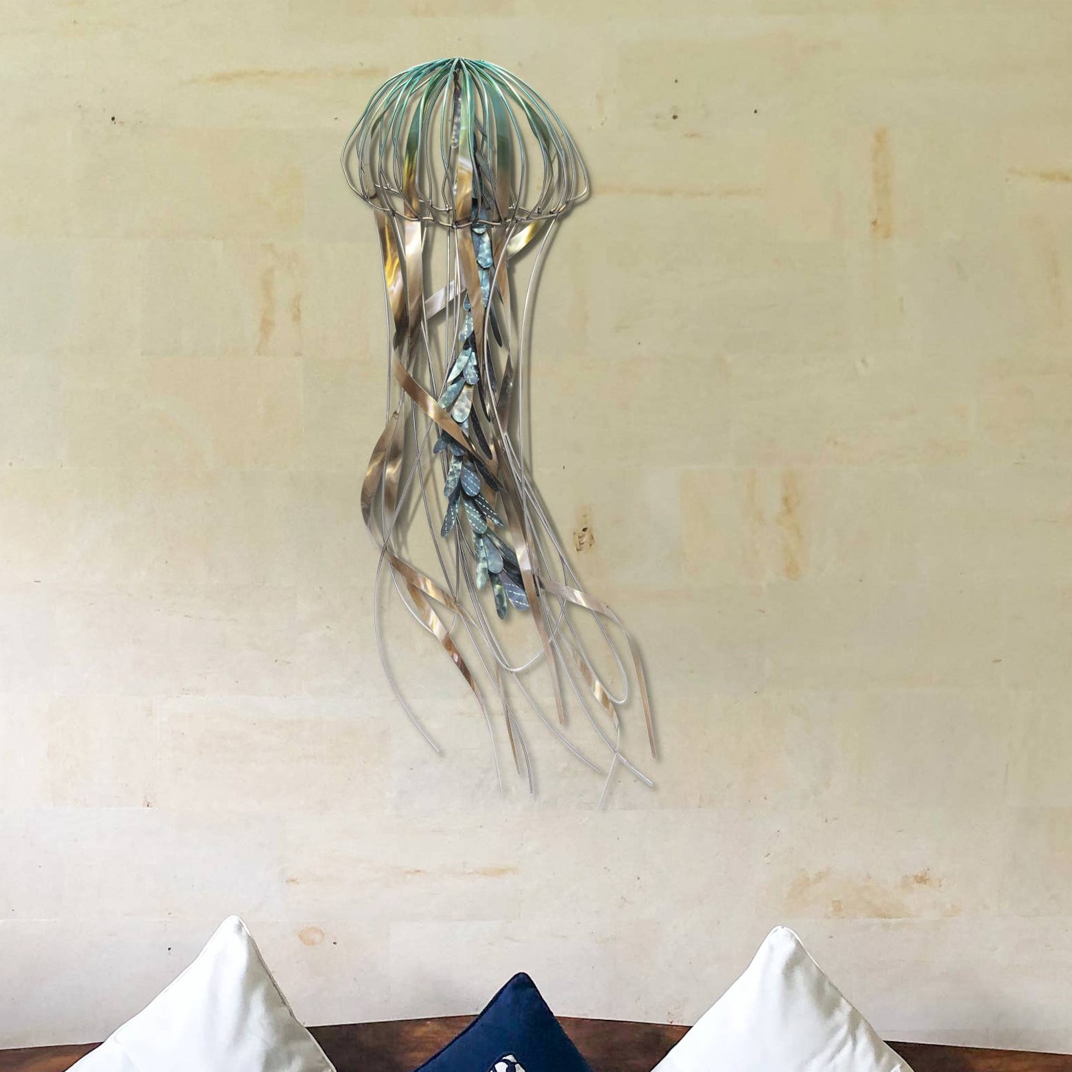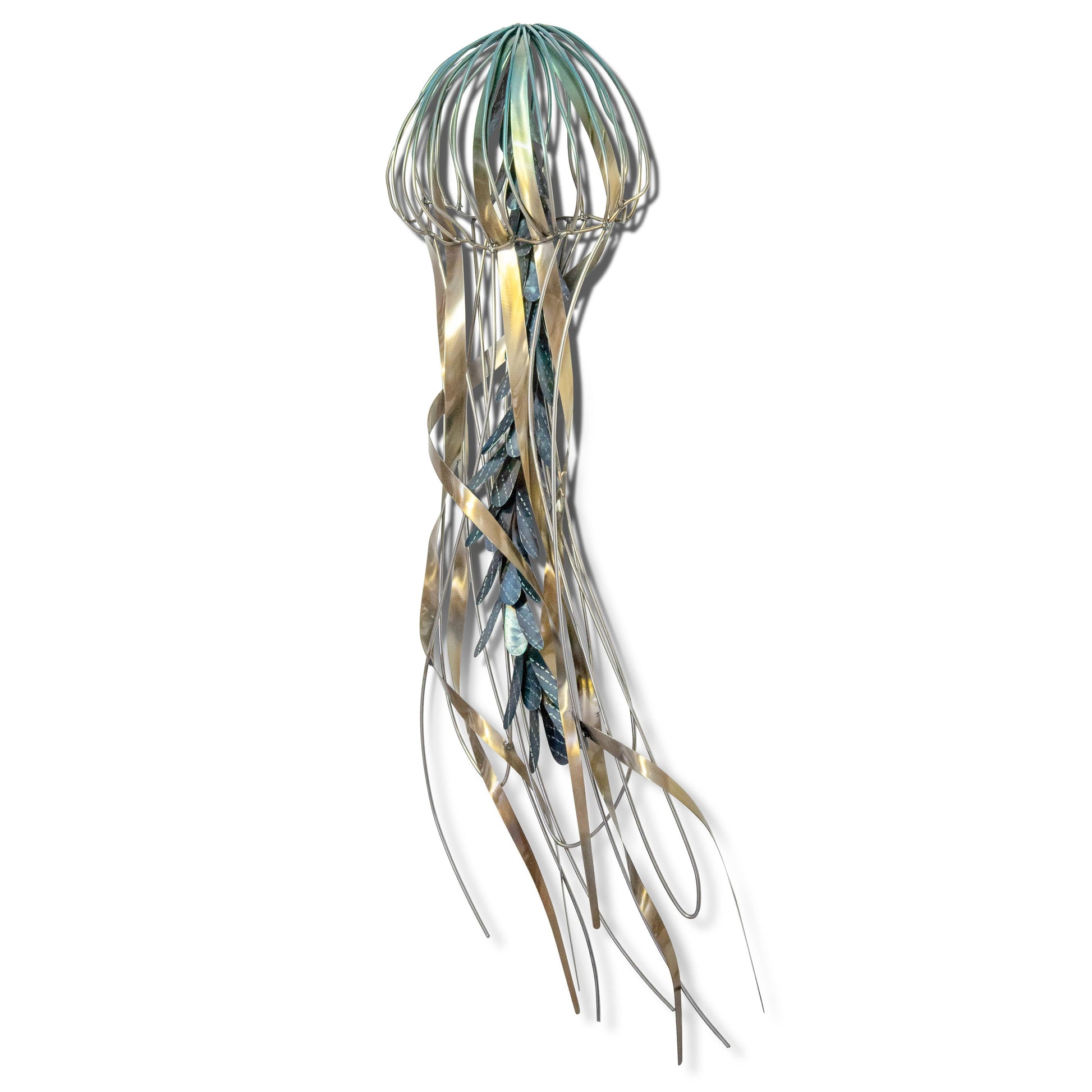 - Dive into whimsy with this hand-crafted stainless steel jellyfish, where artisanal details come alive through hand-ground textures and heat-applied patina.