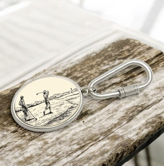 - Crafted from elegant porcelain and durable stainless steel, this simple yet stylish keychain is the perfect gift for any golf enthusiast.