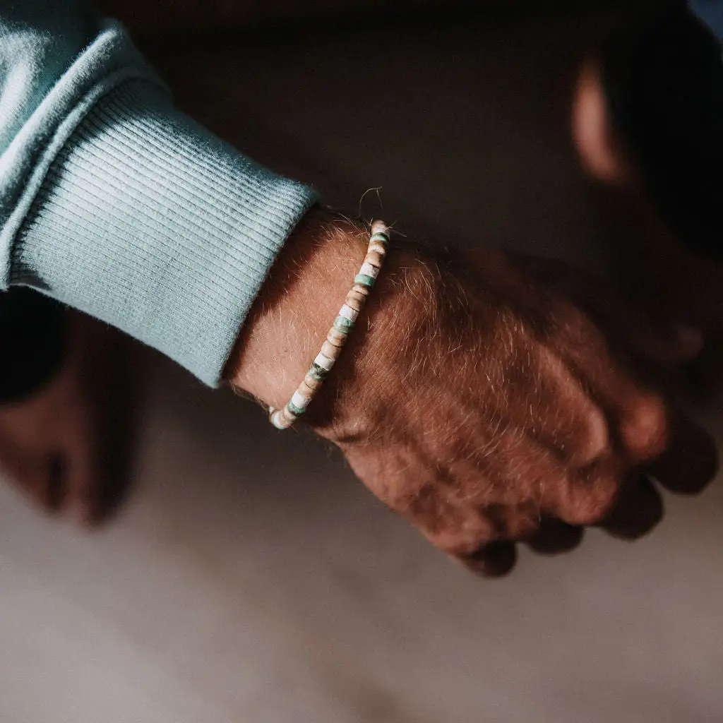 - Freshen up your style with a tri-toned Laut Turquoise & Wood Bracelet.