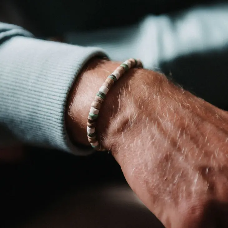 - This bracelet has a classic surf colour palette teamed with textured coconut wood beads and was practically made to wear with a wetsuit.
