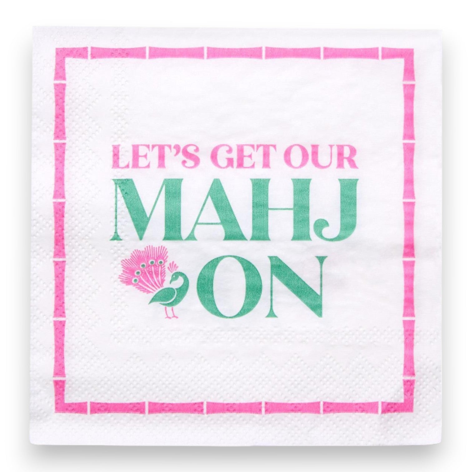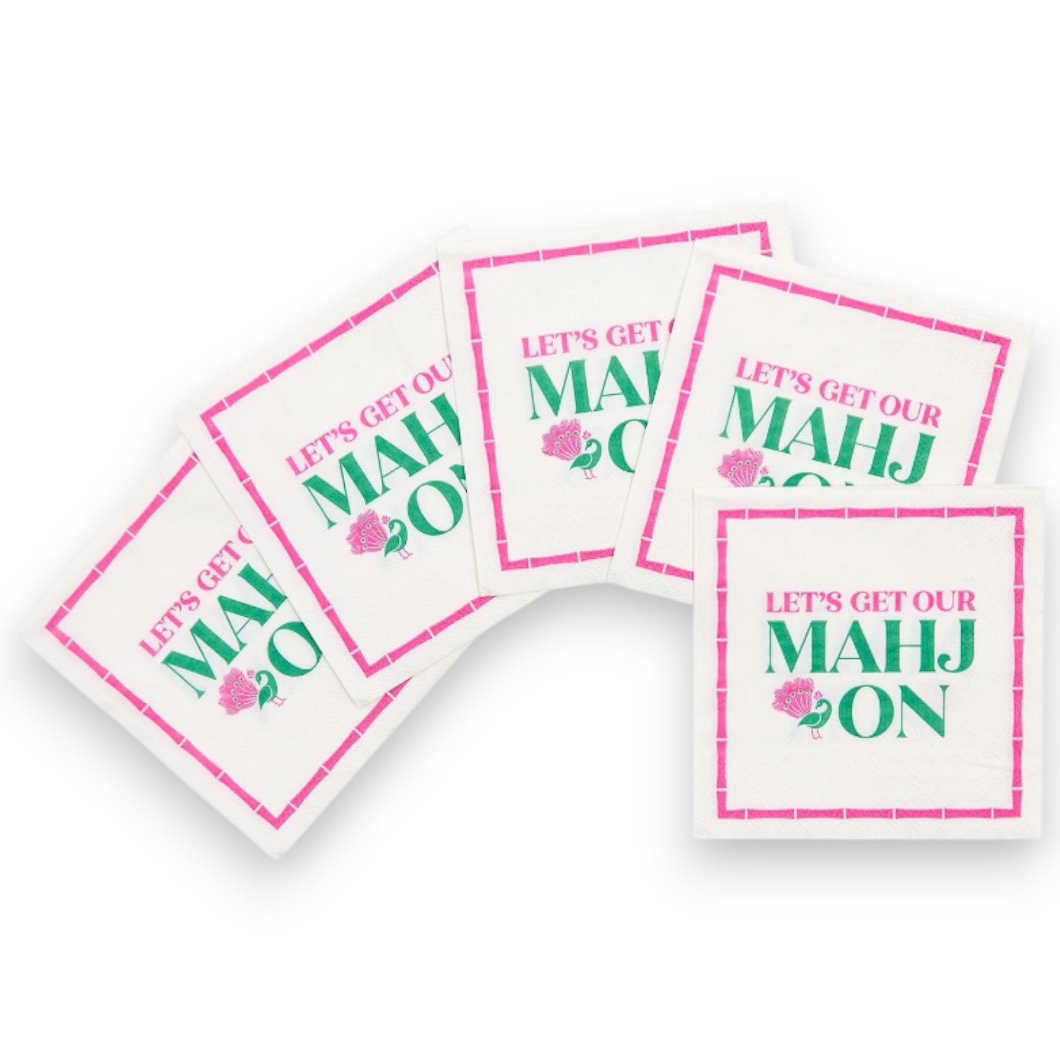 - Get your Mahj On! The "Let's Mahj On" 3-Ply Paper Cocktail Napkins is perfect for entertaining in style. These designer napkins feature a chic design that adds a touch of sophistication to any gathering or game time. These napkins are both beautiful and functional.