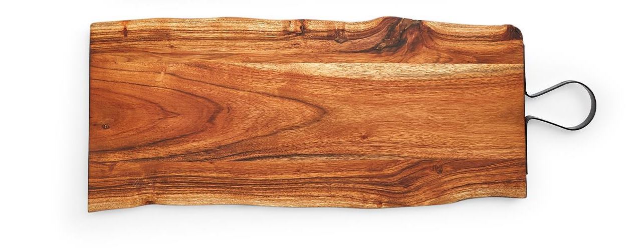Live Edge Artisanal Acacia Wood Cutting and Charcuterie Long Board with Iron Handle