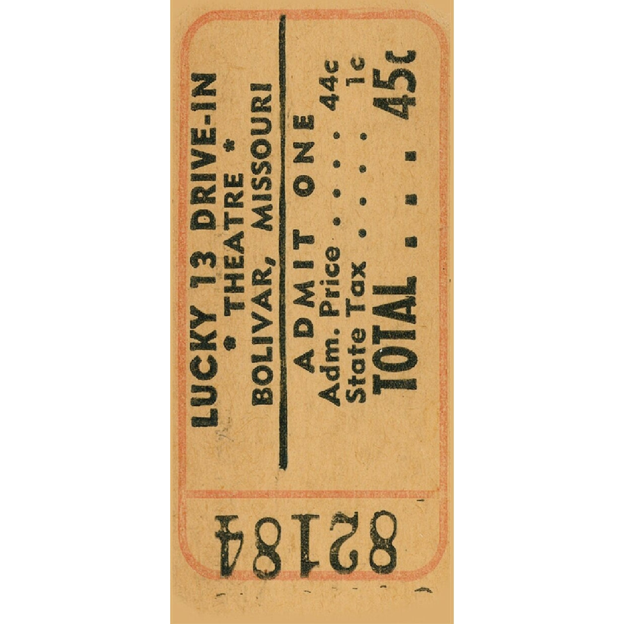 • Part of the fun is figuring out the connection, such as this drive-in theater ticket for the Lucky 13 Drive-In Theater in Bolivar, Missouri, which was in operation from 1935-1957.  The projection system was a 2 projector system that required switchovers after each reel. The lamps were carbon arc.