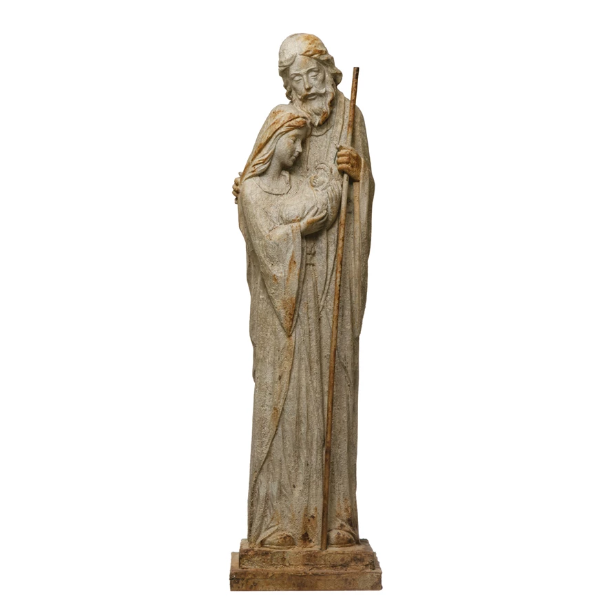 - Made out of magnesia, this Holy family has a distressed finish that blends with any decor styles.