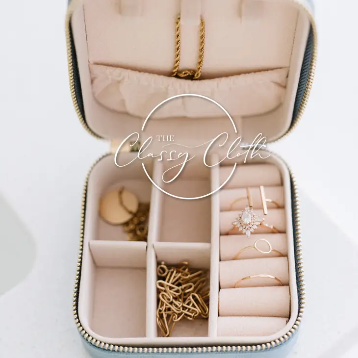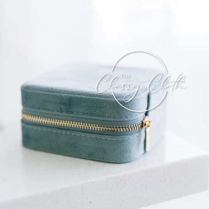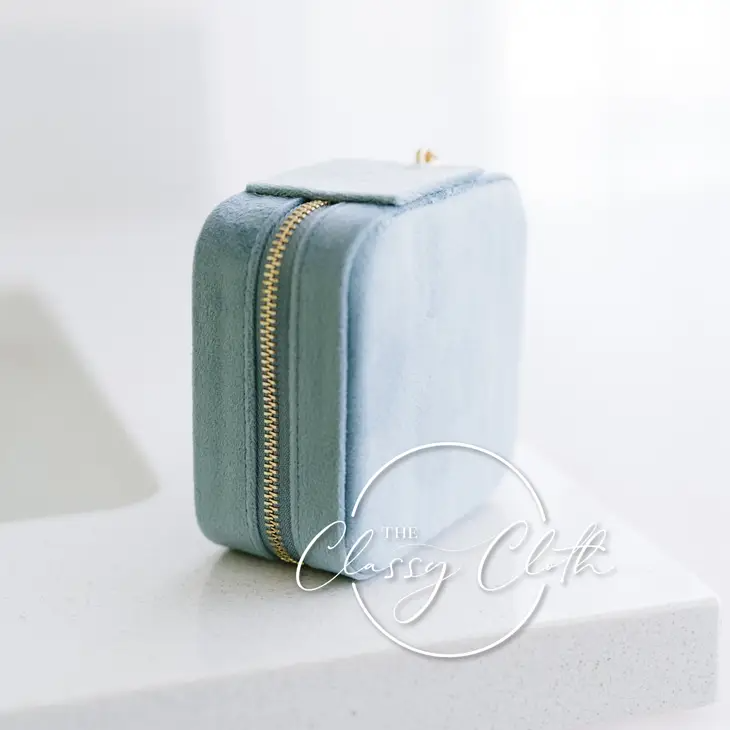 Mini Velvet Zippered Travel Jewelry Case - Dusty Blue