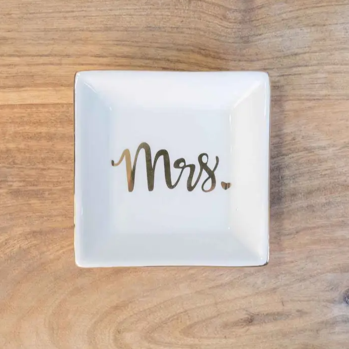 - Light up your bride or wife's day with Mrs. White and Gold Ceramic Trinket Dish!