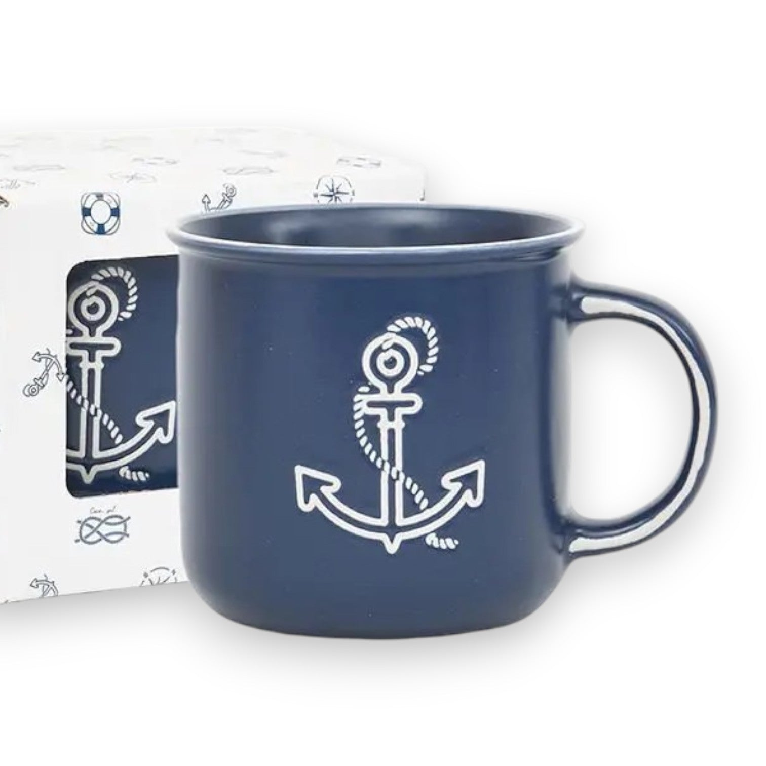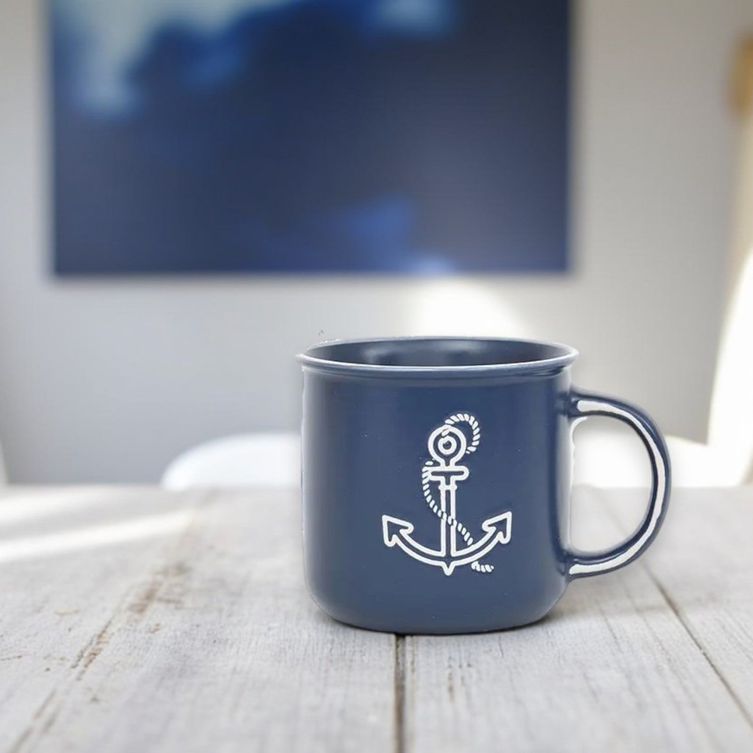 - Set sail on your morning routine with our Nautical Anchor Ceramic Mug in Navy!