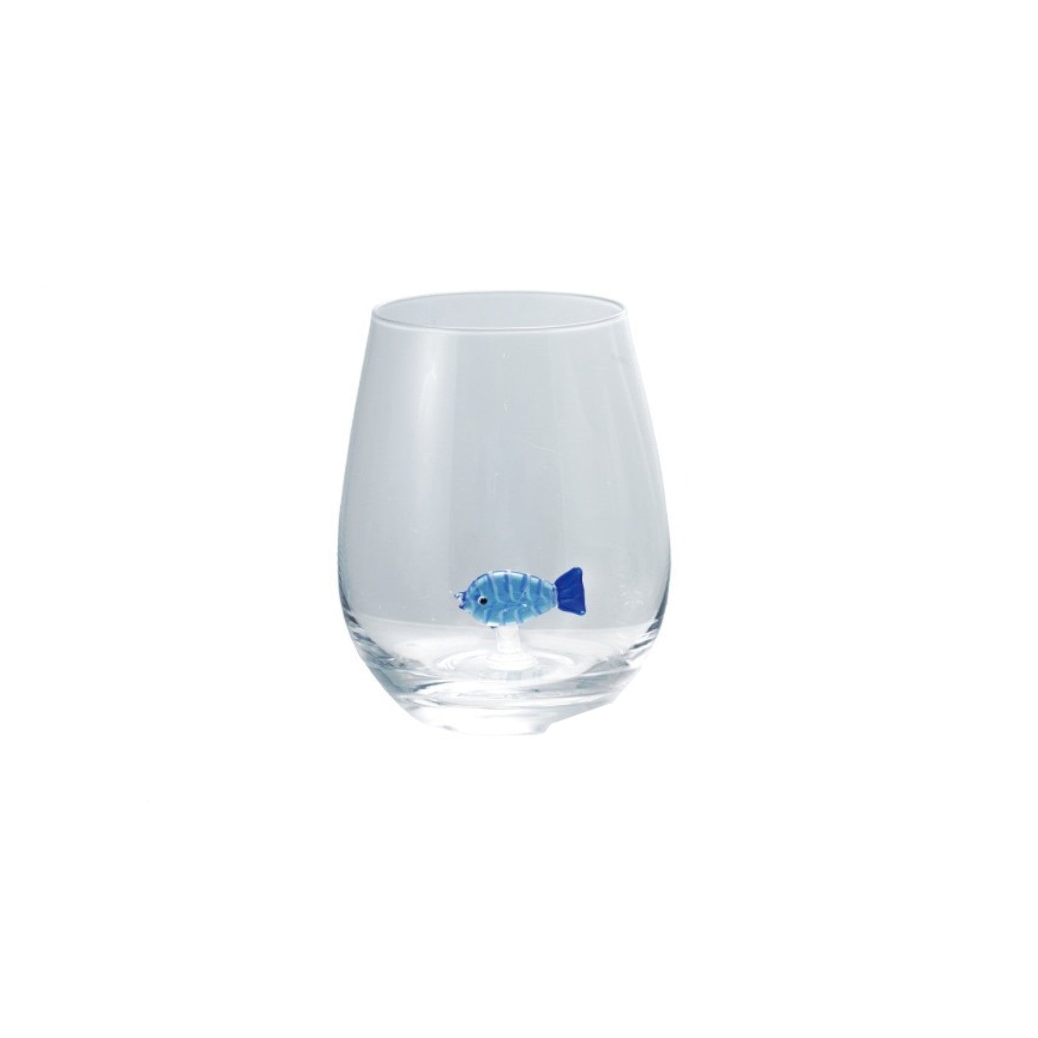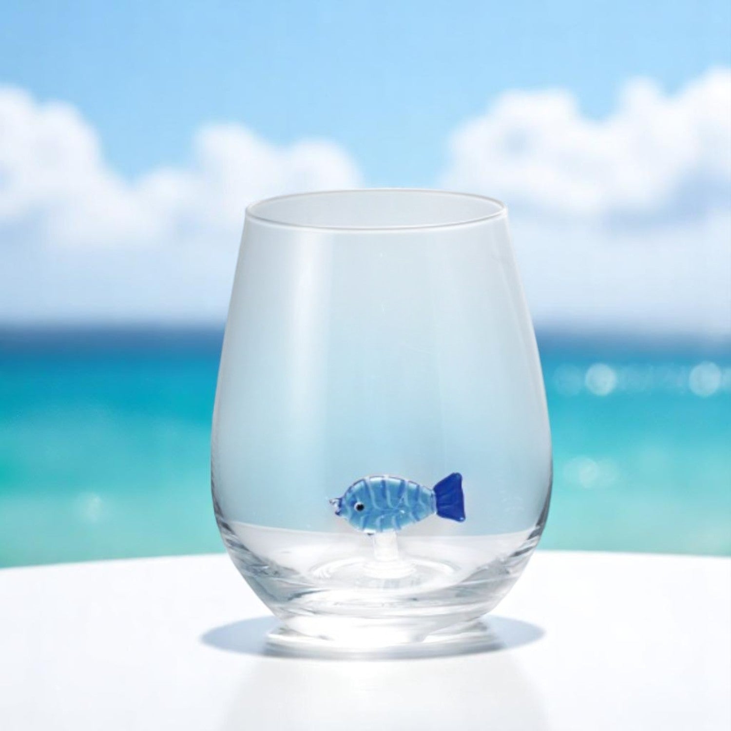 Pufferfish - Stemless Wine Glass with Hand-Blown Figure Inside - 18-oz