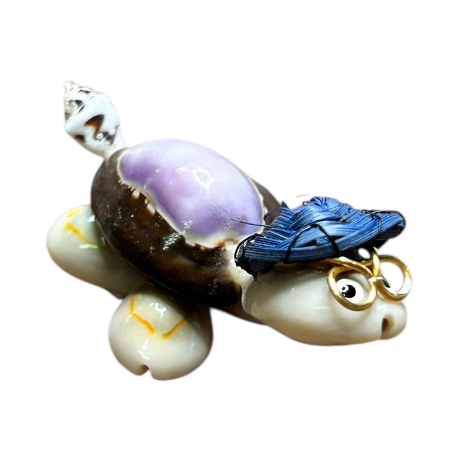 Purple Snakehead Cowry Shell Mini Turtle Figurine