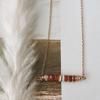 - Its 14k gold plated chain and red and pink beads create an elegant look that makes you shine with every step.