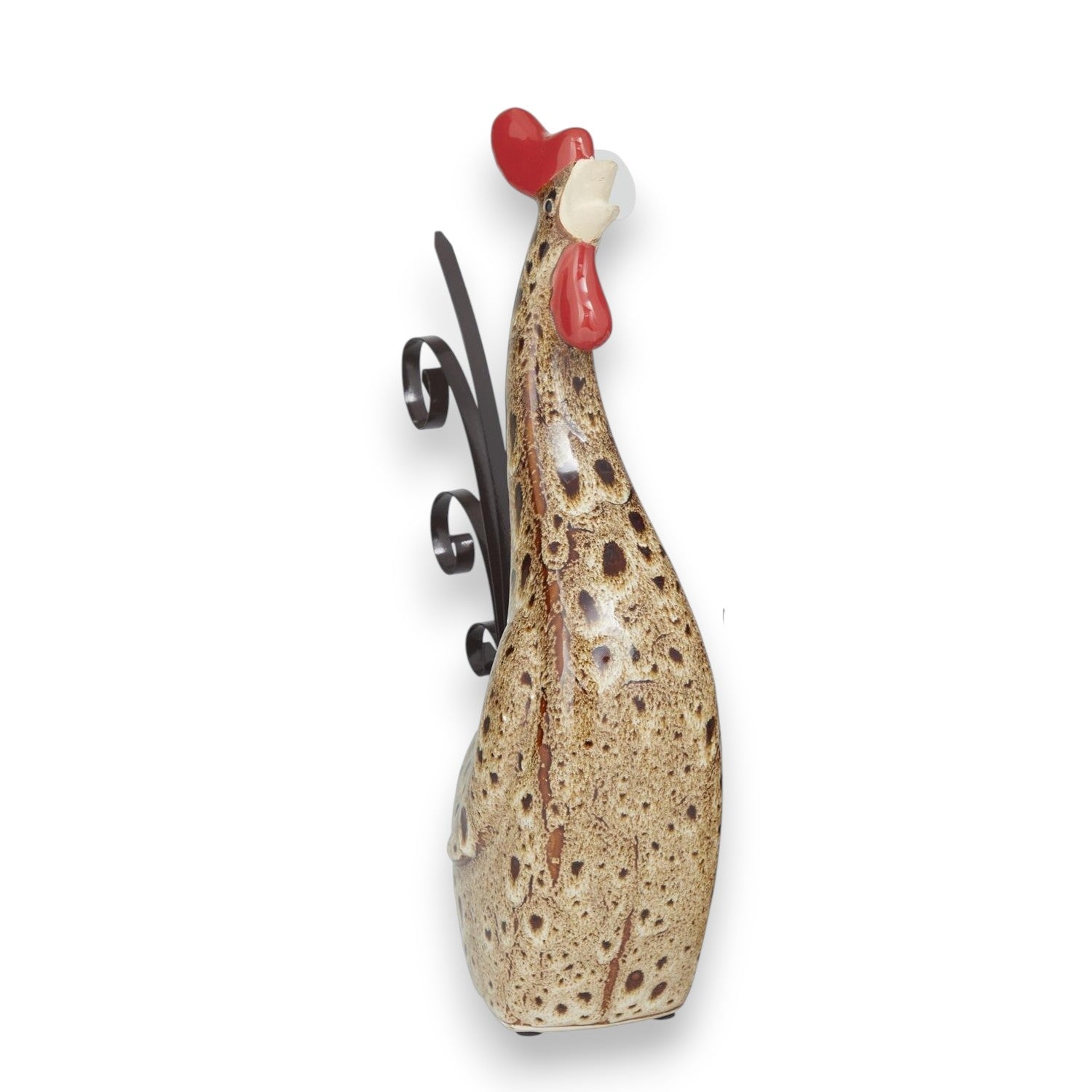 - Add a dash of rustic fun to your space with this 13-inch ceramic and metal rooster garden sculpture.
