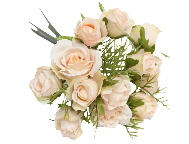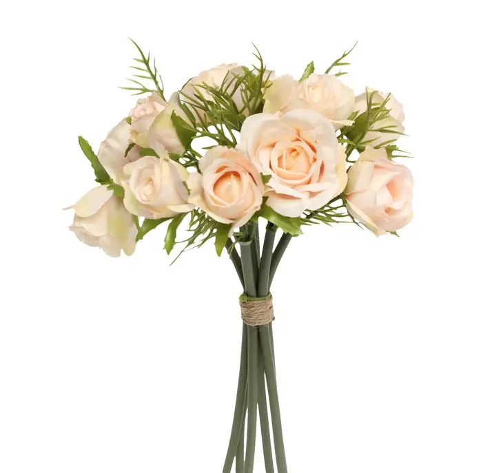 Light Champagne Rosebud Pre-Tied Bouquet Faux Flowers - 10"