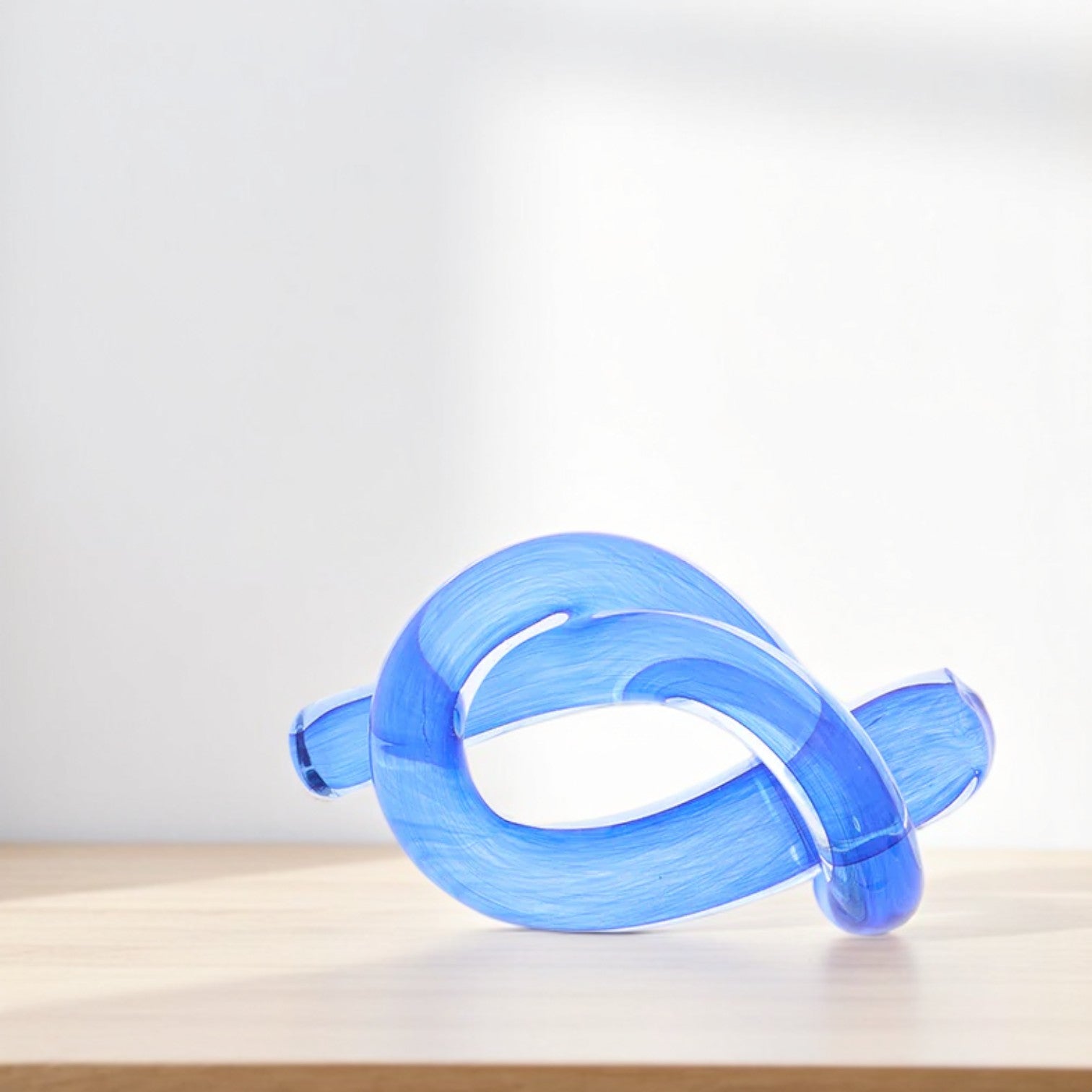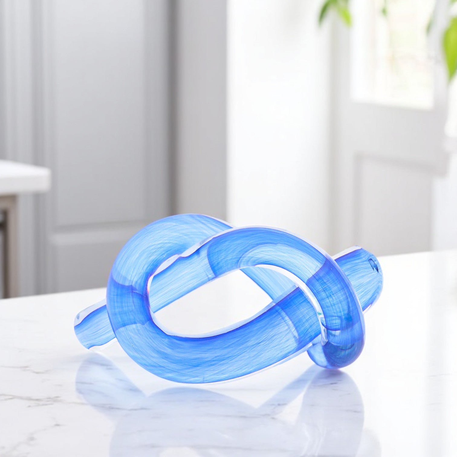- Crafted with care and attention to detail, this elegant blue glass knot is a perfect accent for shelves or tables.