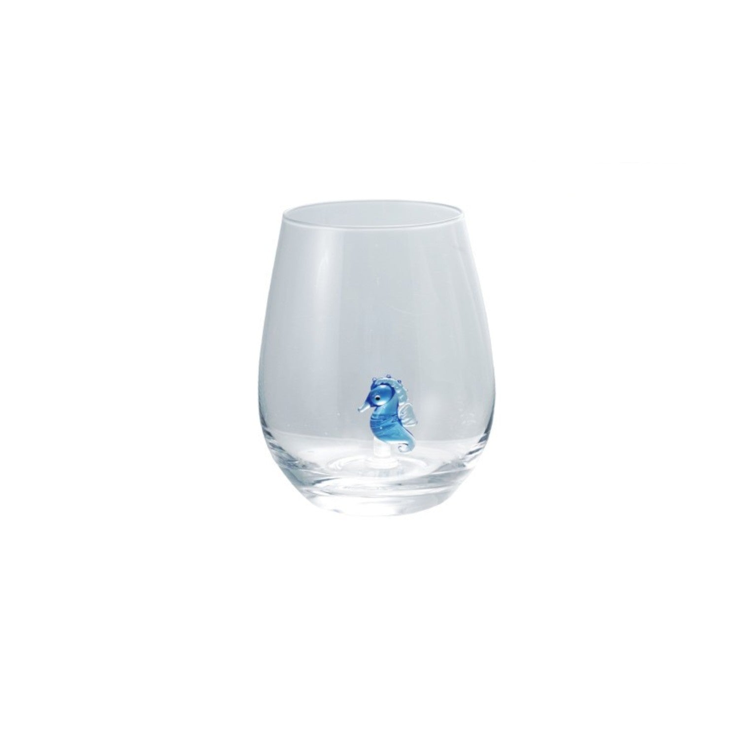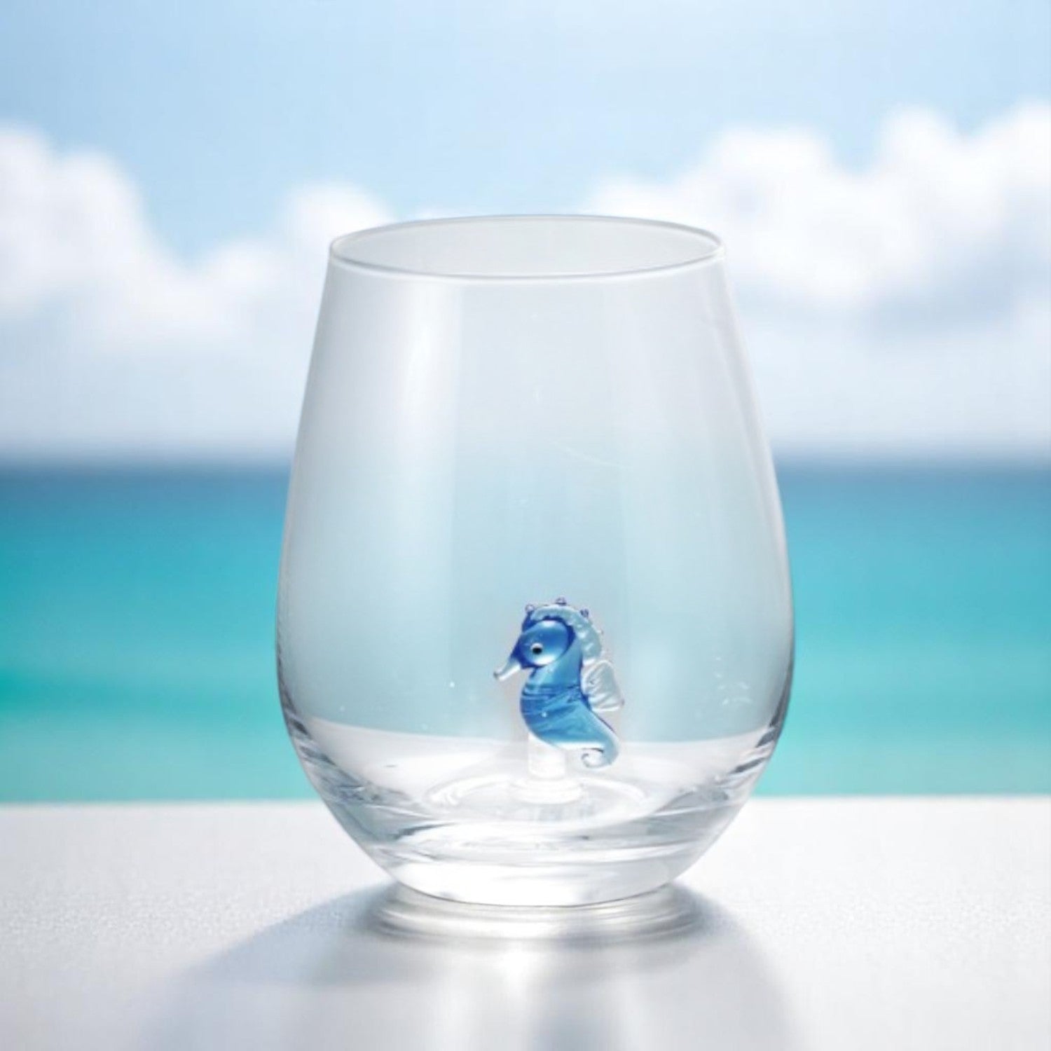 Seahorse - Stemless Wine Glass with Hand-Blown Figure Inside - 18-oz