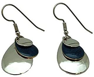 Silver Forest Blue Enamel Teardrop Shiny Silver Dangle Earrings
