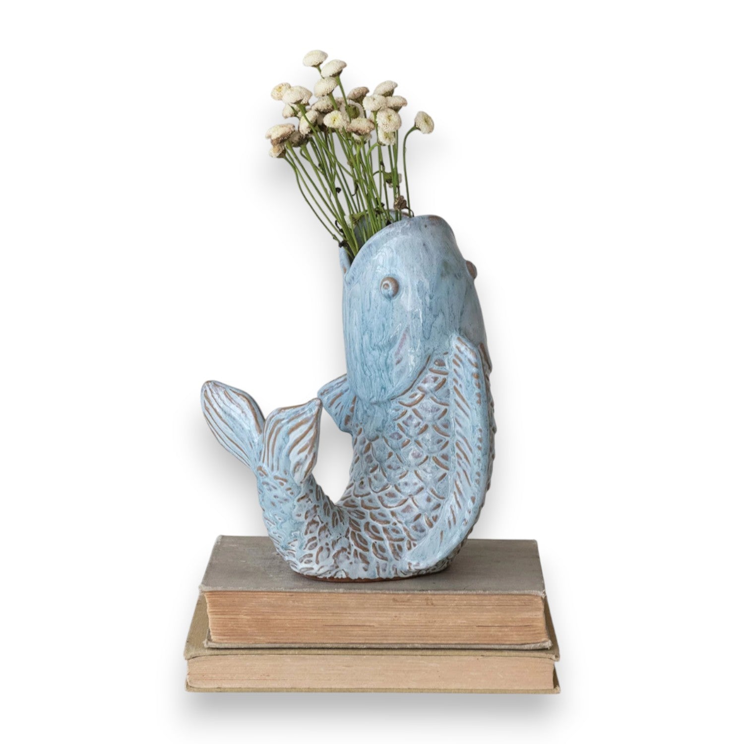 Stoneware Fish Shaped Vase - 8-1/4-in