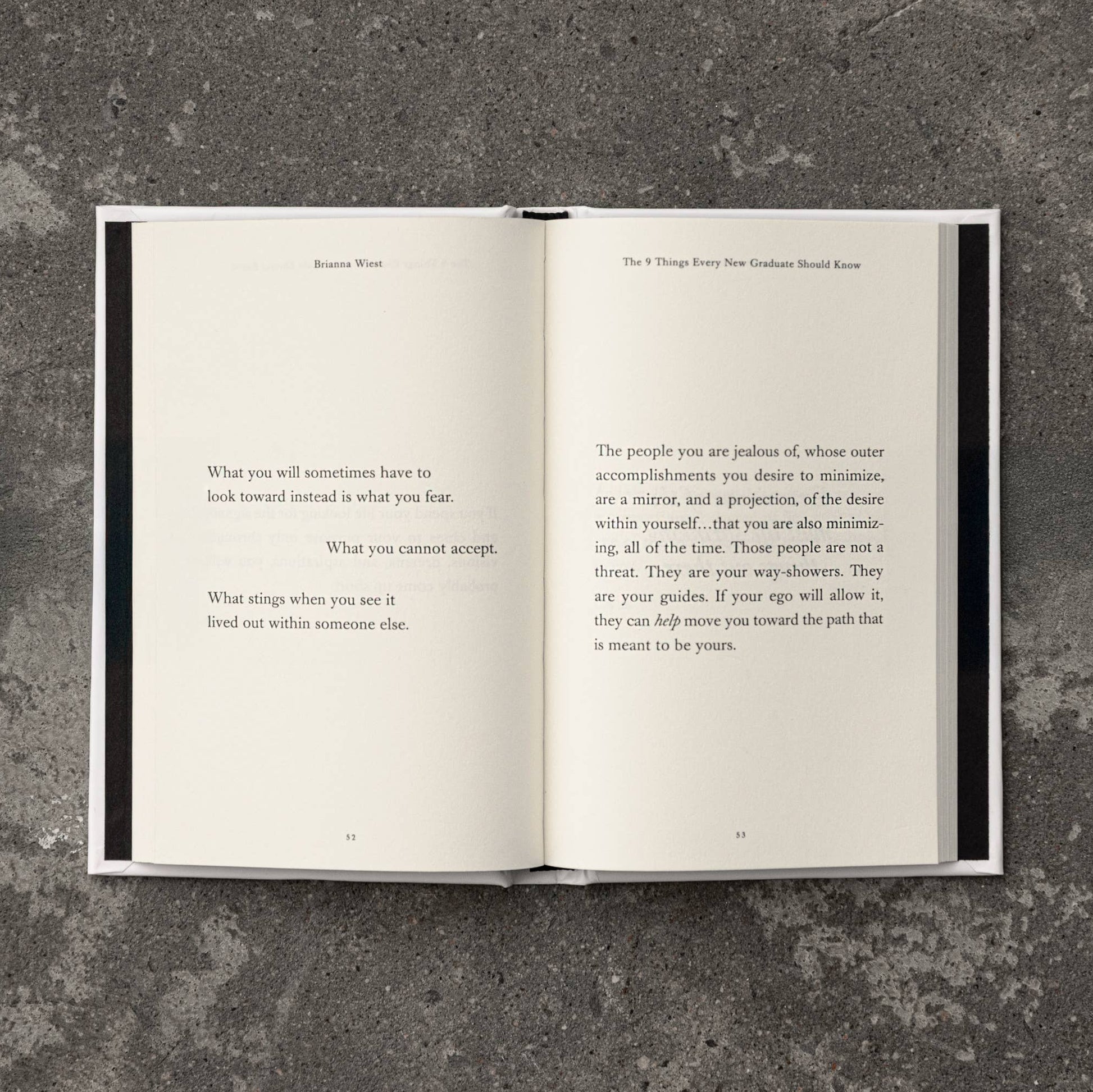 - In May 2024, Brianna Wiest returned to Elizabethtown College to deliver the commencement address to its graduating class. "The 9 Things Every Graduate Should Know" is that speech, transcribed and designed as a book: nine lessons she wishes she had known at the moment of her own beginning, written to an audience of one — the version of herself standing on exactly that threshold.