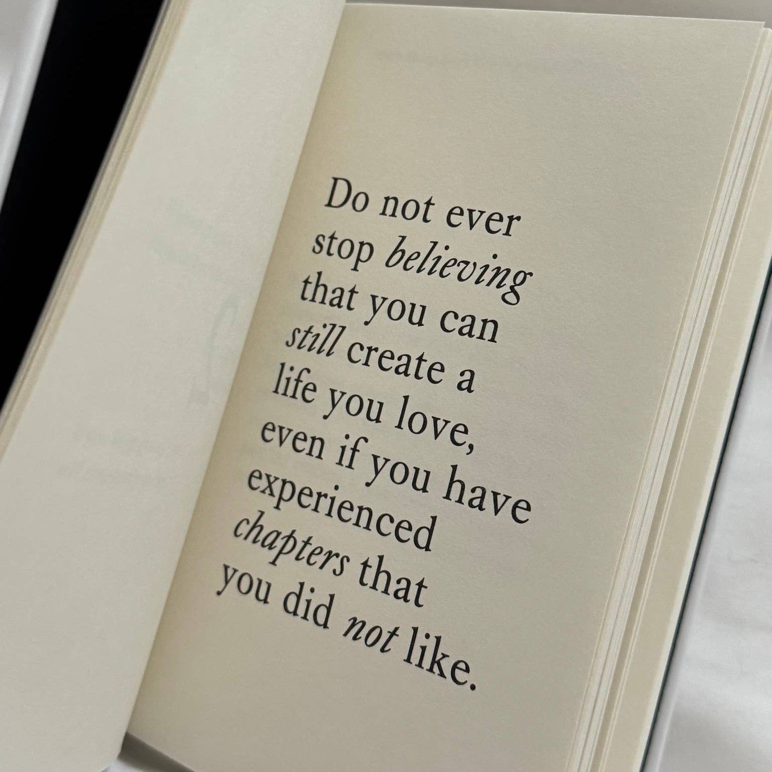 - 2. Do not stop believing you can create a life you love, even after chapters you didn't like. The past holds no bearing against your presence. Every day you have the chance to change your life.