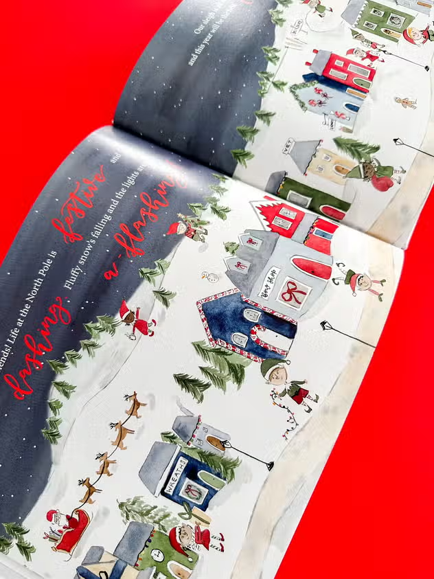 • Both dust cover and cover are detailed with red foil, and there is a magical foil surprise within each book as well! Color your own door hanger.