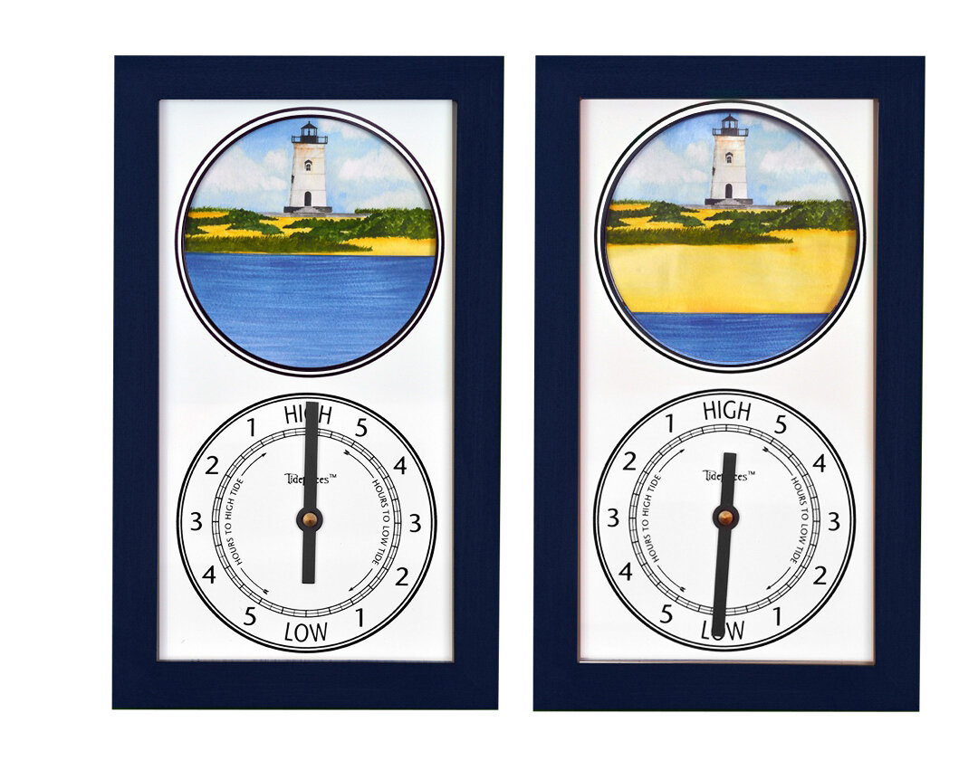 • Handcrafted by local artisan, Alan Winick, this tide clock has the image of Edgartown Light on Martha's Vineyard, Massachusetts, with a harbor tide that rises and falls as the actual tide in your location goes from high to low.