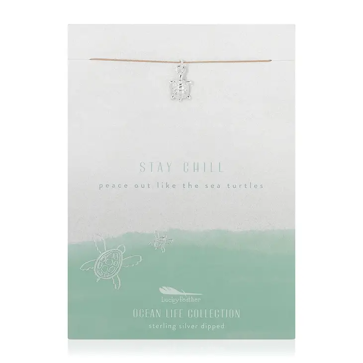 Stay chill with our dainty sterling silver sea turtle charm on a cord necklace.