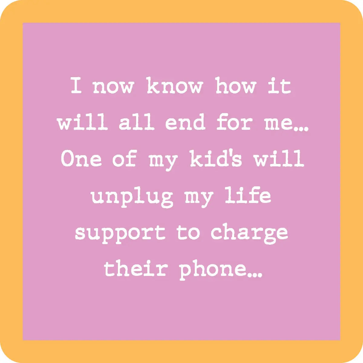 - "I now know how it will all end for me... One of my kids will unplug my life support to charge their phone."