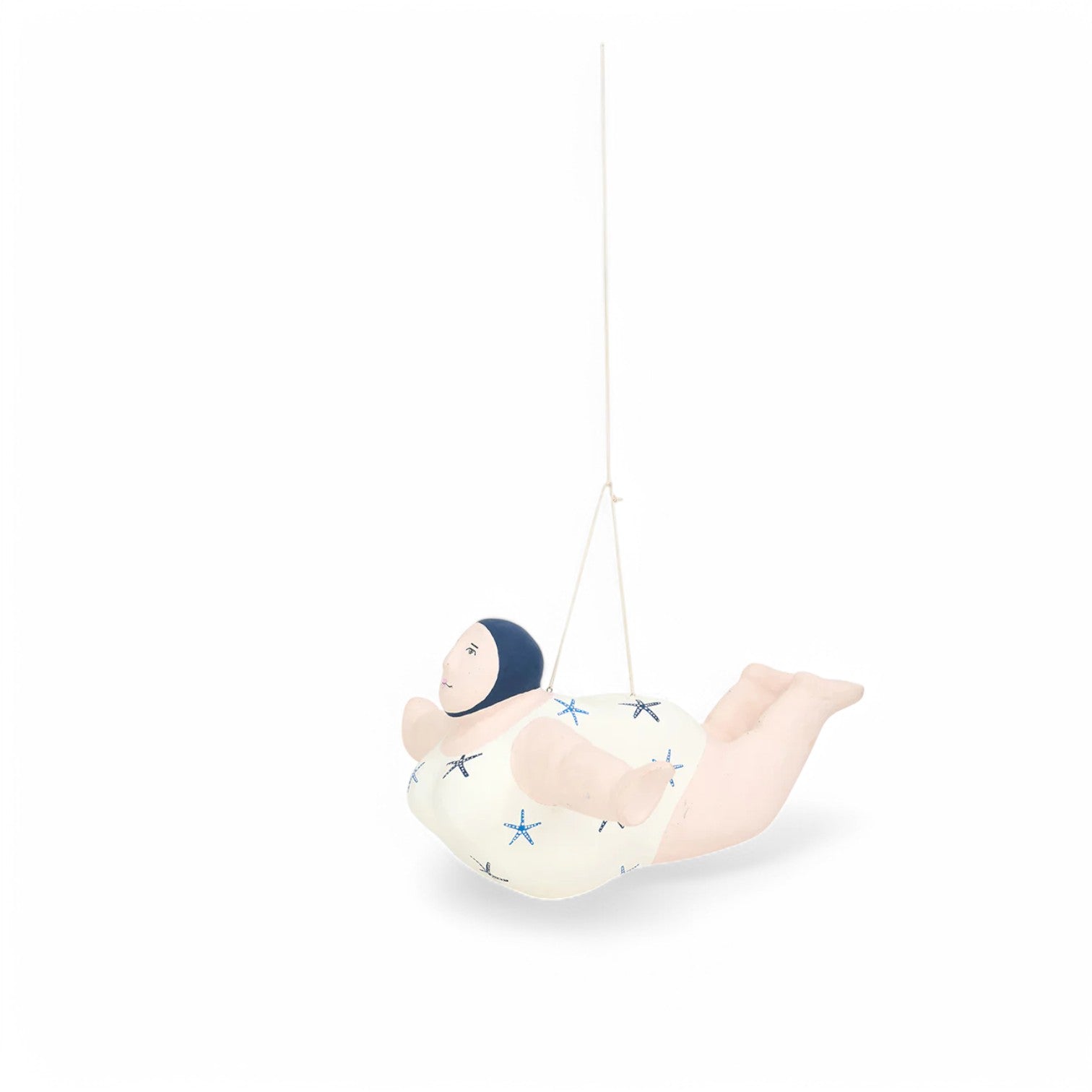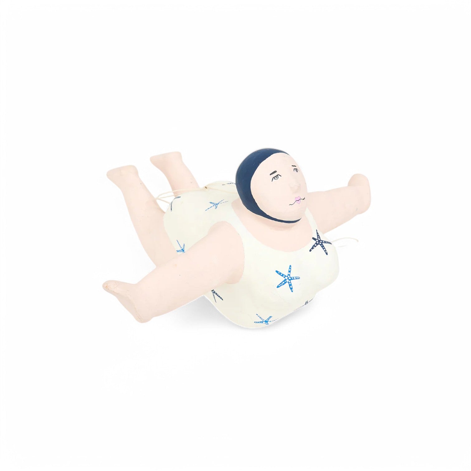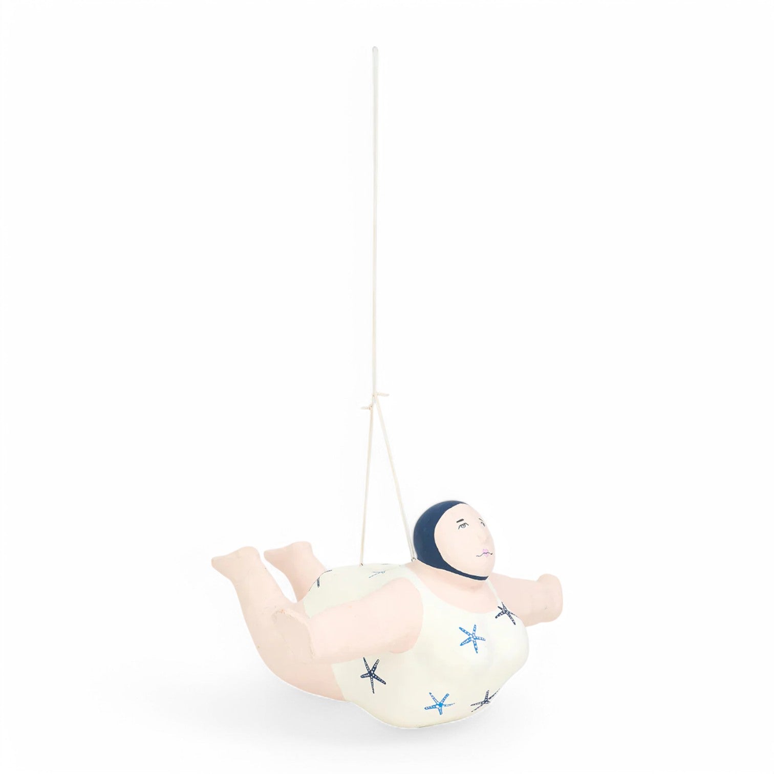 - Delightful papier-mâché figurine, designed to hang down, as though it is swimming.