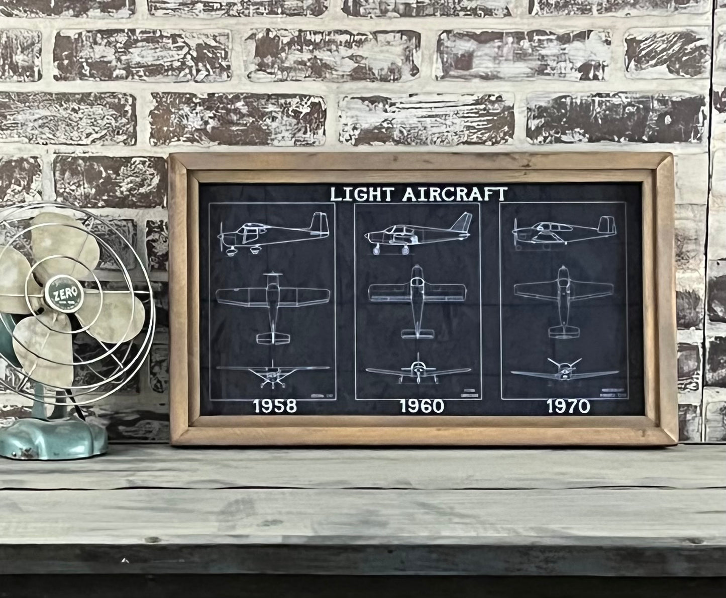 Vintage Light Aircraft Patent Office Drawing Trio - Framed Shadowbox 21-in