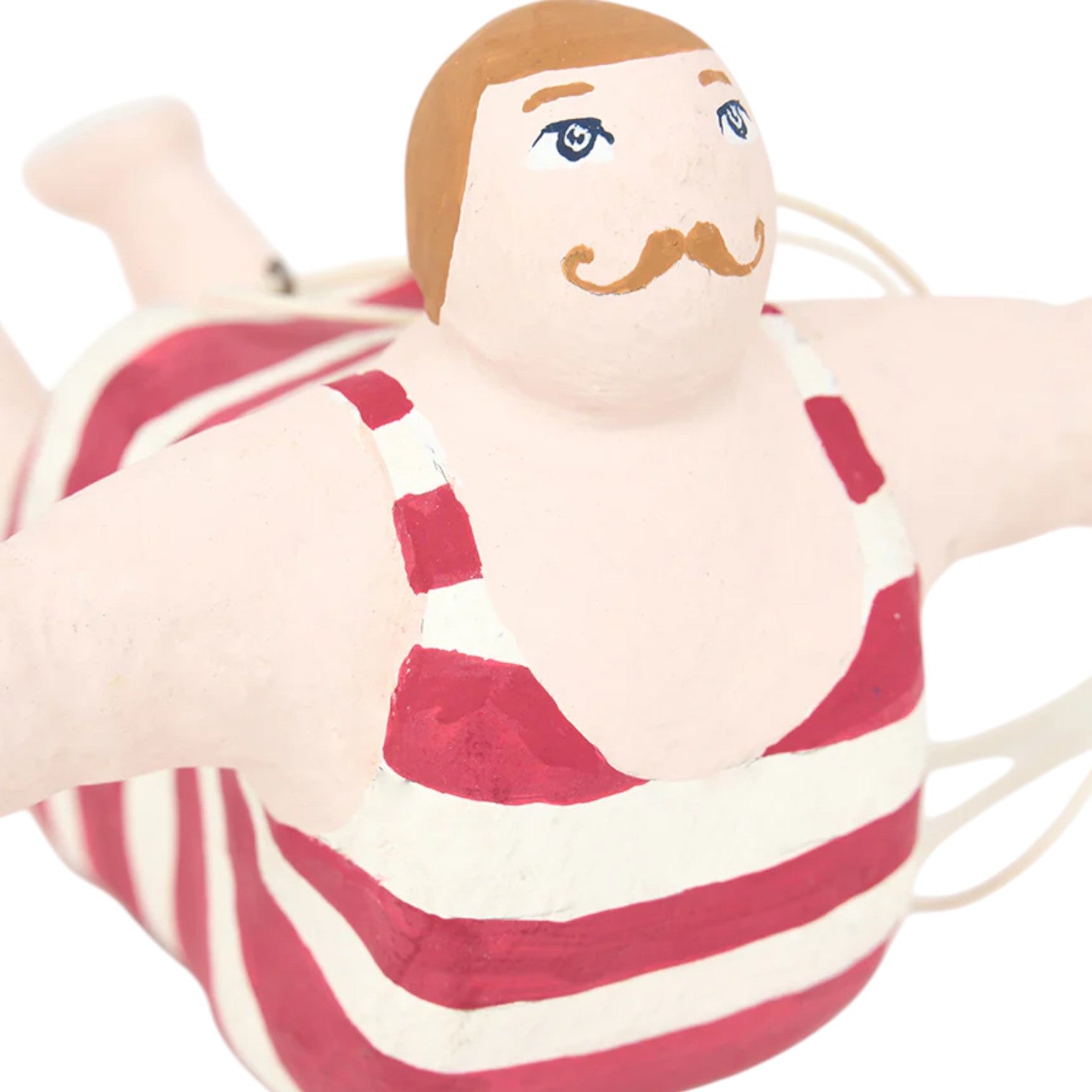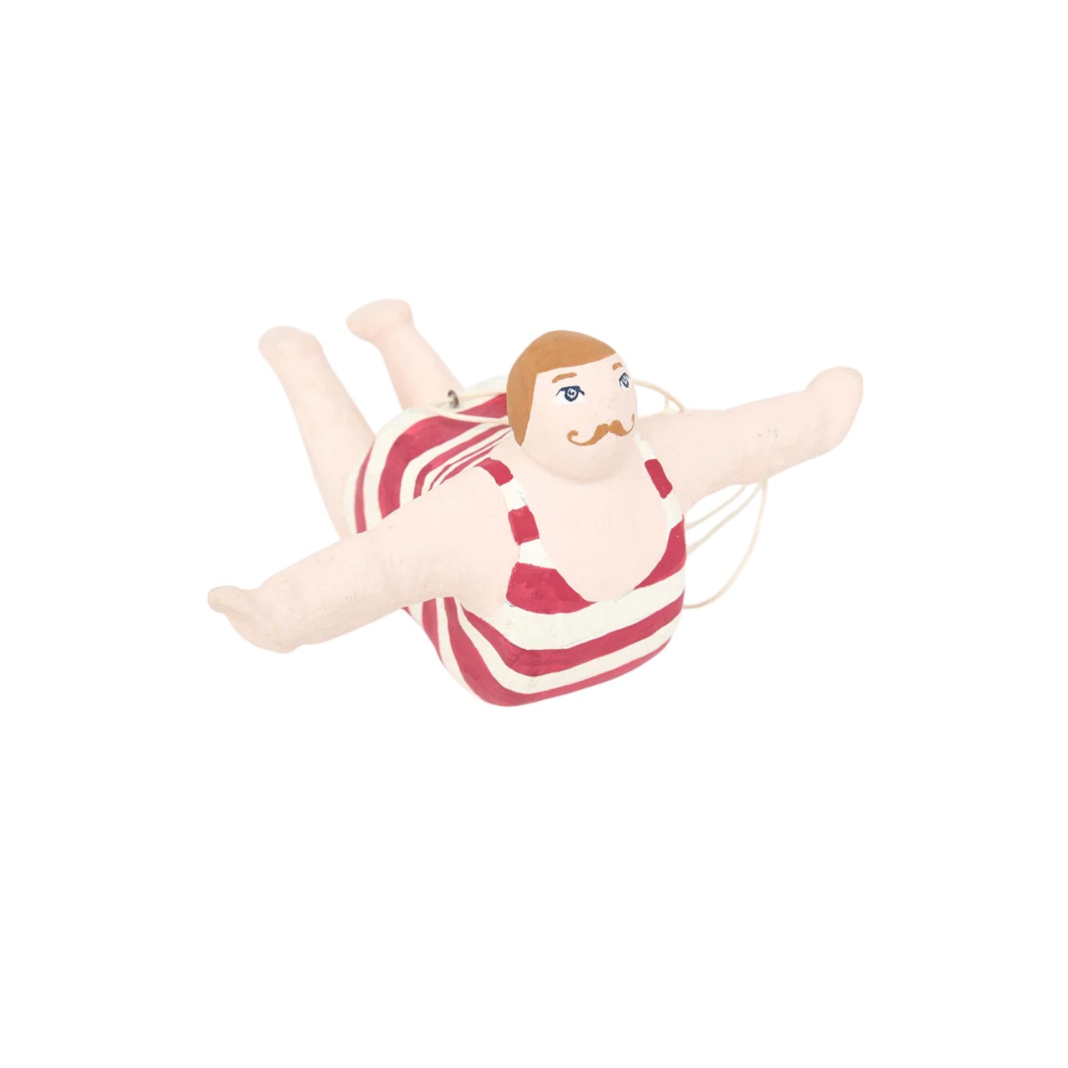 Vintage Male Bather Hanging Figurine with Red & White Stripes - 6-in