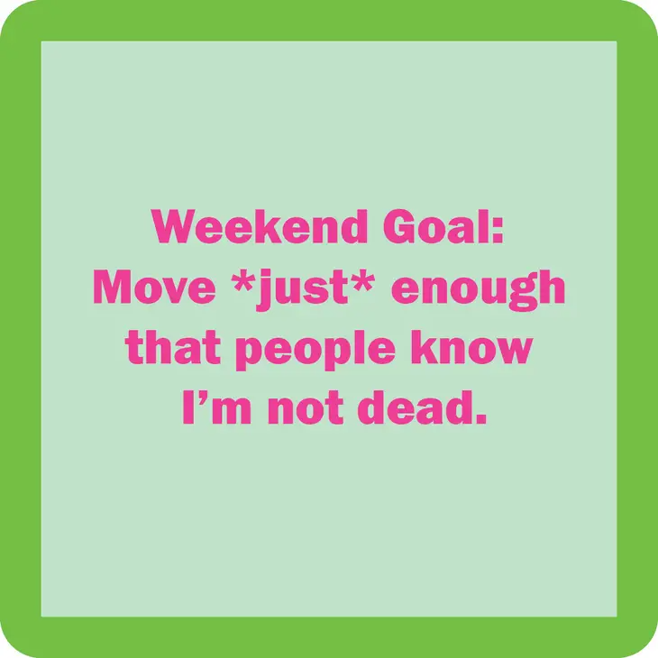 - "Weekend Goal: Move *just* enough that people know I'm not dead."