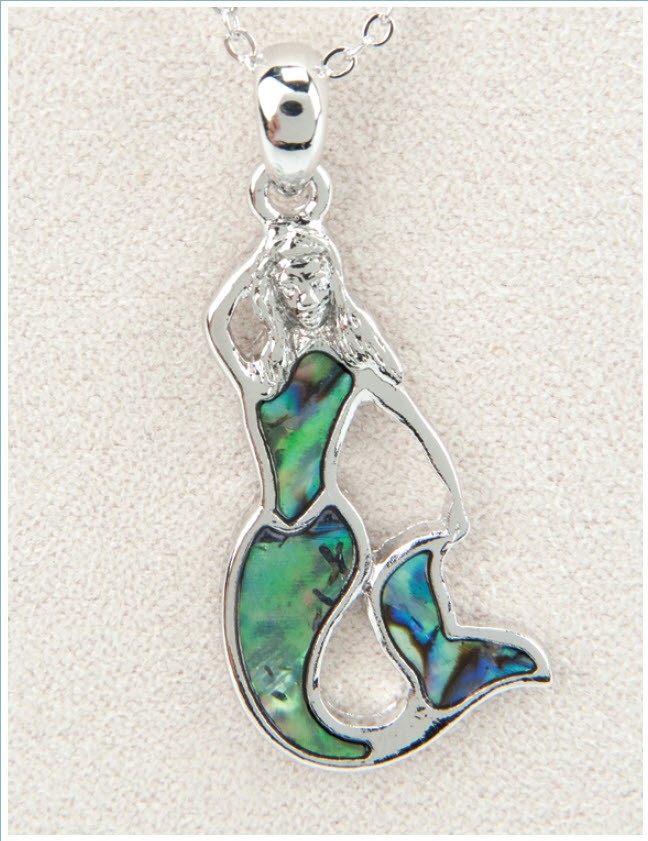 - A lovely abalone shell necklace with a mermaid pendant.