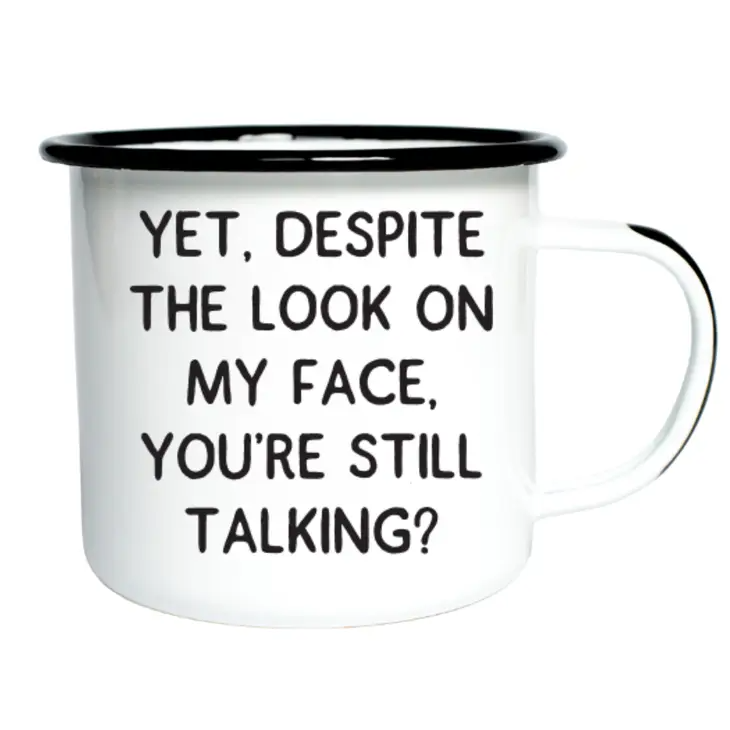 Yet, Despite The Look On My Face, You're Still Talking - Enamel Mug - 16 oz